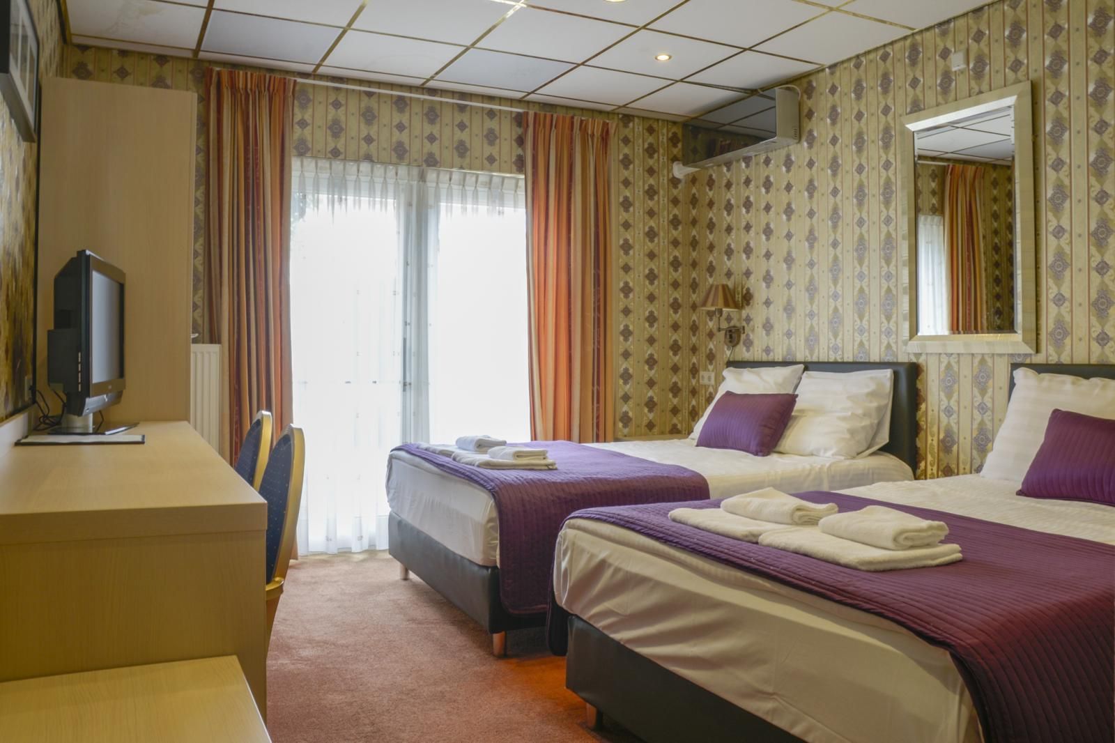 This room is suitable for 4 persons and is equipped with a shower, toilet, television, heating, free wireless internet, safe, wake-up service, writing desk, hair dryer and ironing service at reception and a radio. The roomprice is excluding breakfast and including service, free shuttle service and citytax. Free parking during your stay.